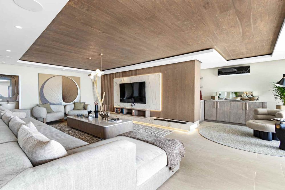 The main living area on this level is a design masterpiece. Revel in a bespoke lounge with custom cabinetry, a wet bar ideal for entertaining, and a seamless flow into the state-of-the-art kitchen. The kitchen boasts marble countertops, built-in appliances, a glass-display wine cellar, and two distinct cooking areas. The scullery and dual laundry rooms enhance the home's functionality. Outdoor living reaches new heights with an entertainment area, pool, and jacuzzi framed by the most spectacular views in Bantry Bay, stretching across Robben Island and beyond.
