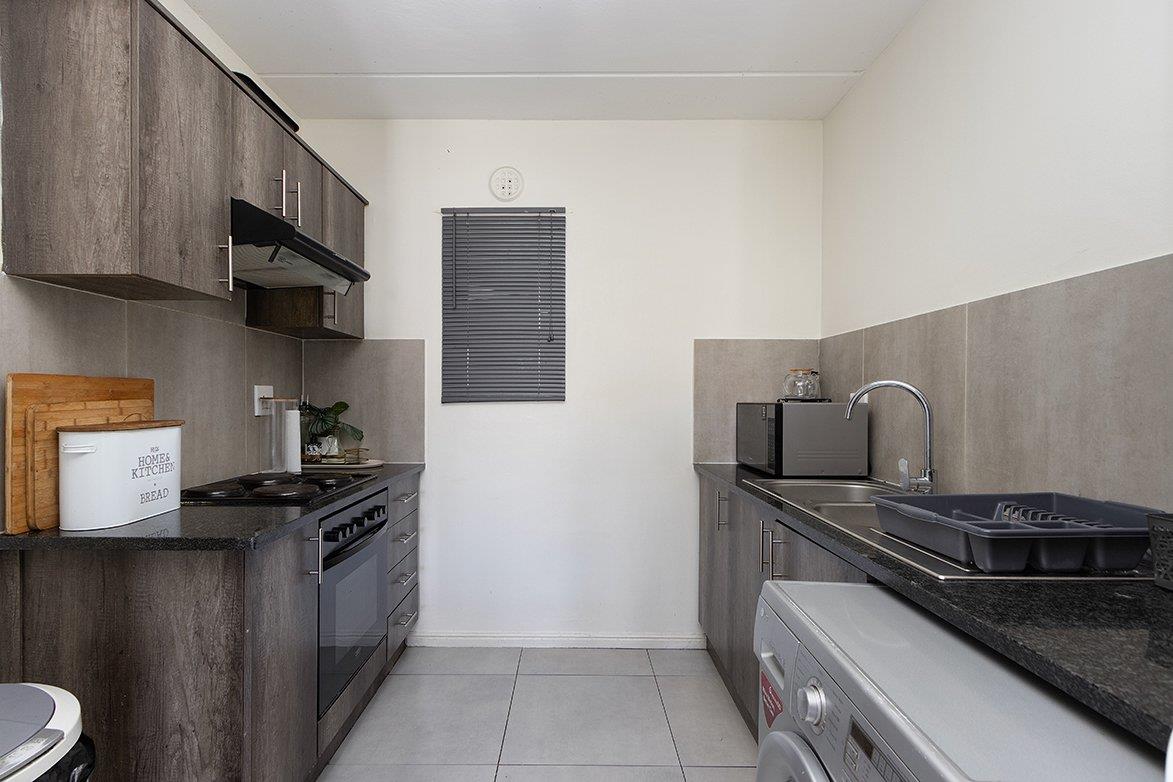 Upon entry, you're welcomed into a spacious living area flooded with natural light, creating an inviting ambience for relaxation or entertaining. Have breakfast on the spacious balcony with views of the majestic Table Mountain! Open-plan kitchen, equipped with contemporary fittings, is ingeniously crafted to streamline your culinary endeavours, ensuring every meal preparation is a joyous affair.