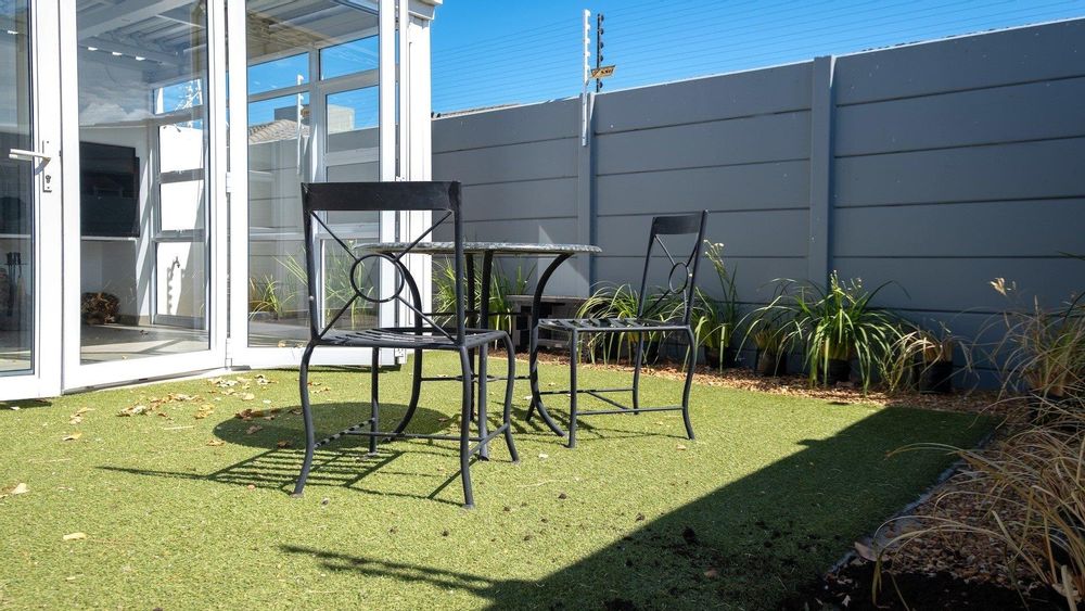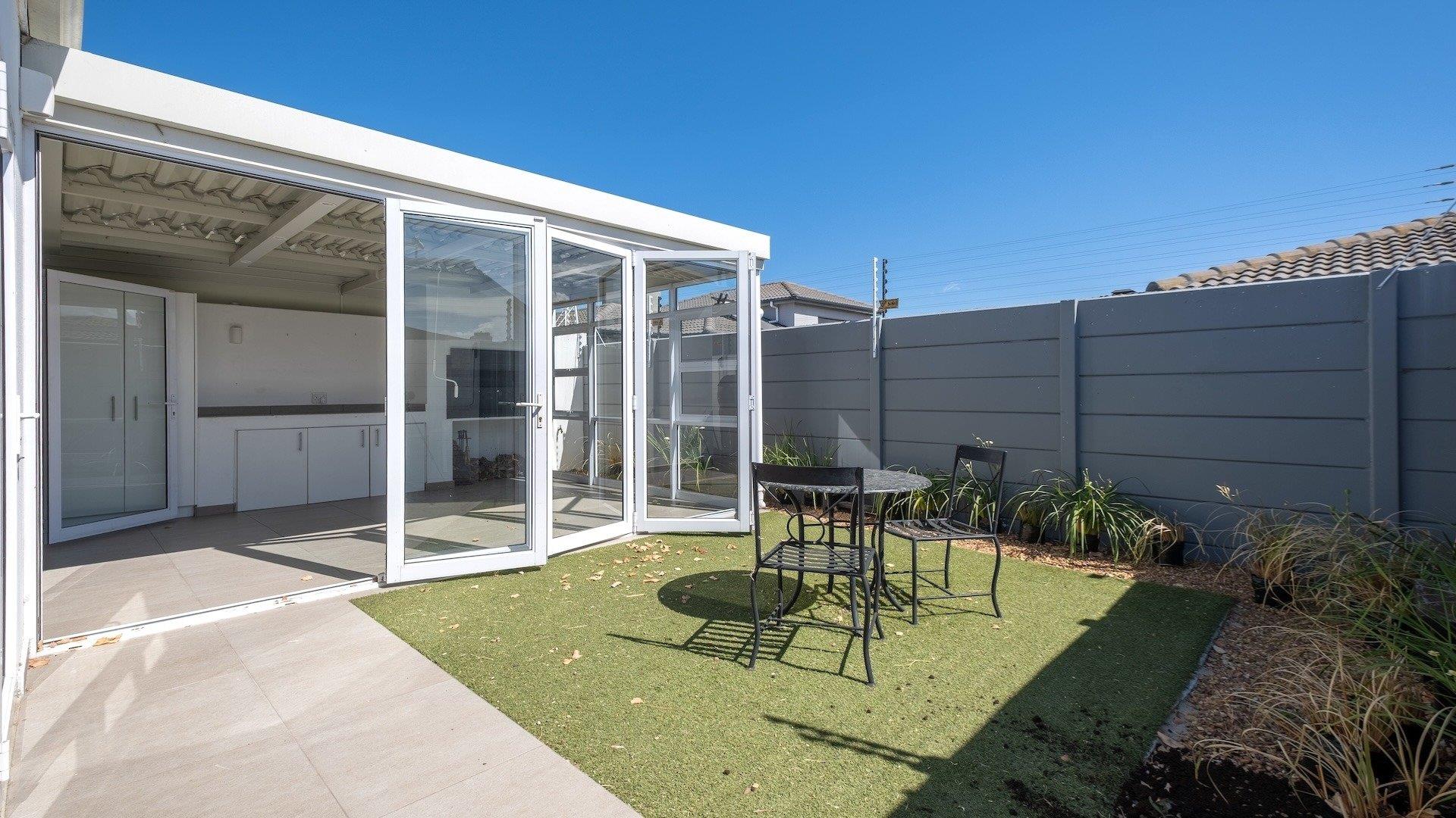 One of the standout features is the enclosed braai room, complete with stacking doors that open onto a private, fully walled garden—ideal for entertaining guests or enjoying relaxed outdoor living.