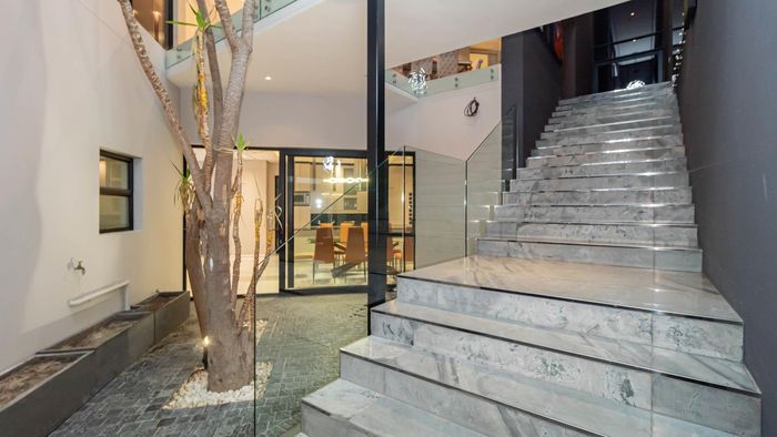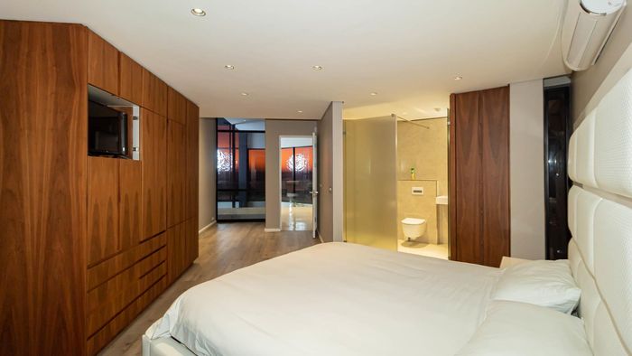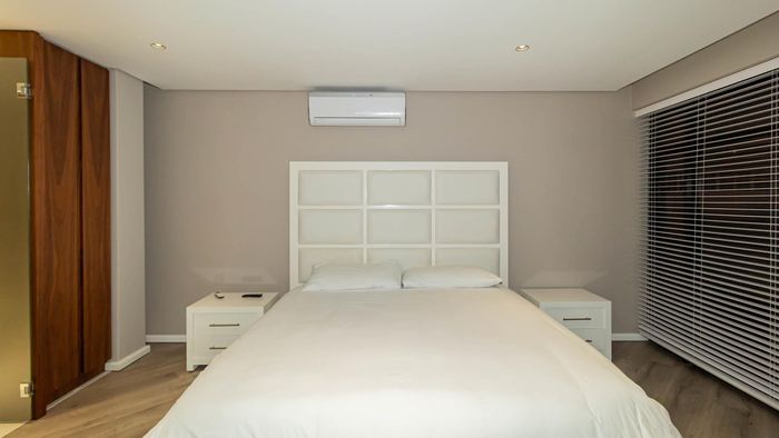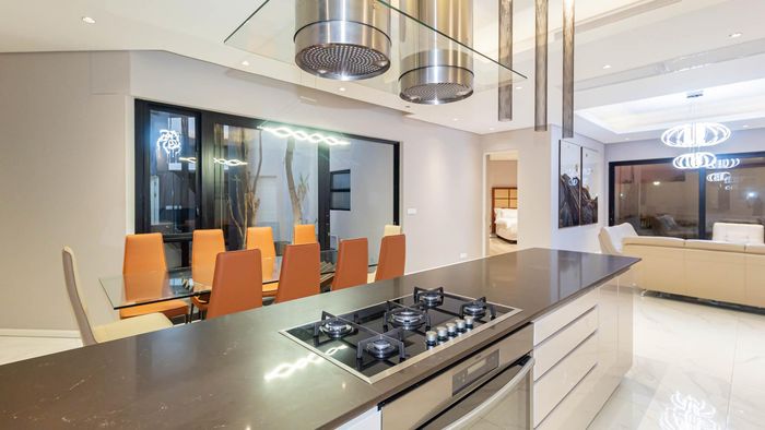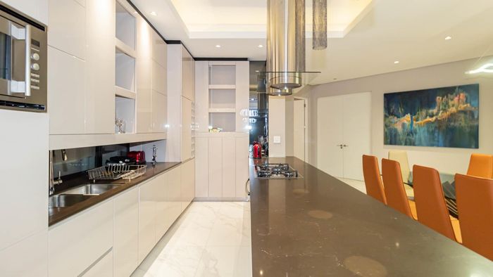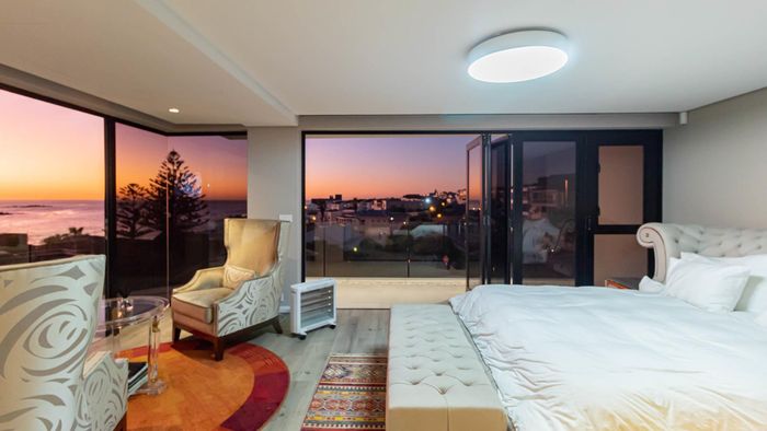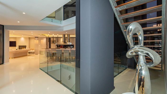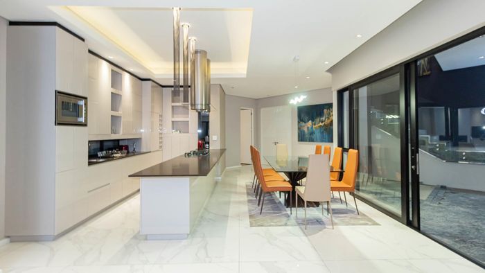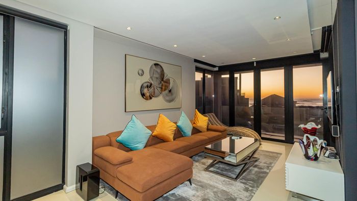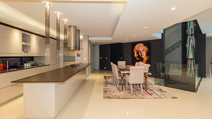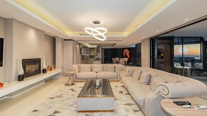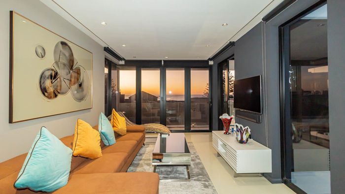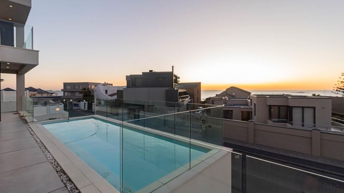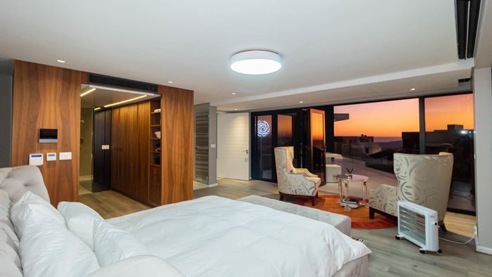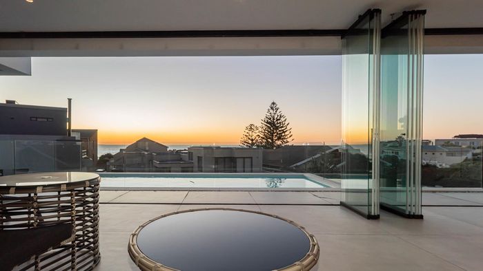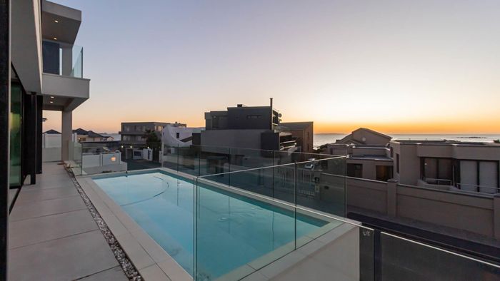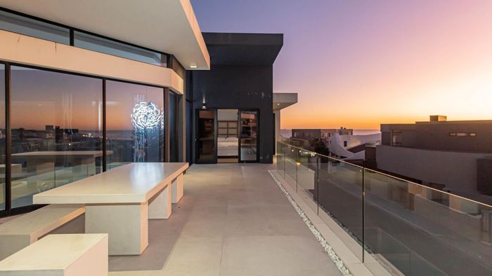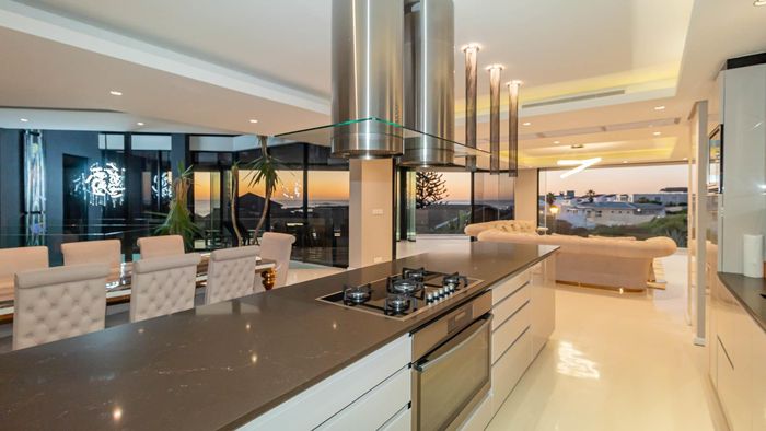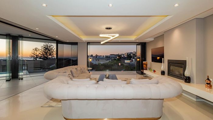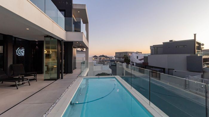 Beachside Blouberg Village living with panoramic sea views and a balcony salt pool, airy atrium and open-plan gourmet kitchen; five bedrooms, six bathrooms and three garages.