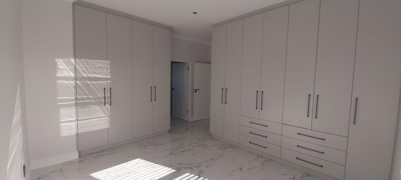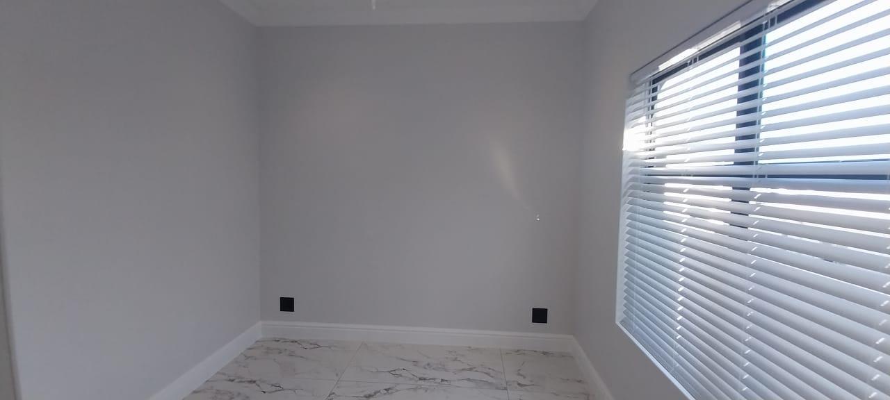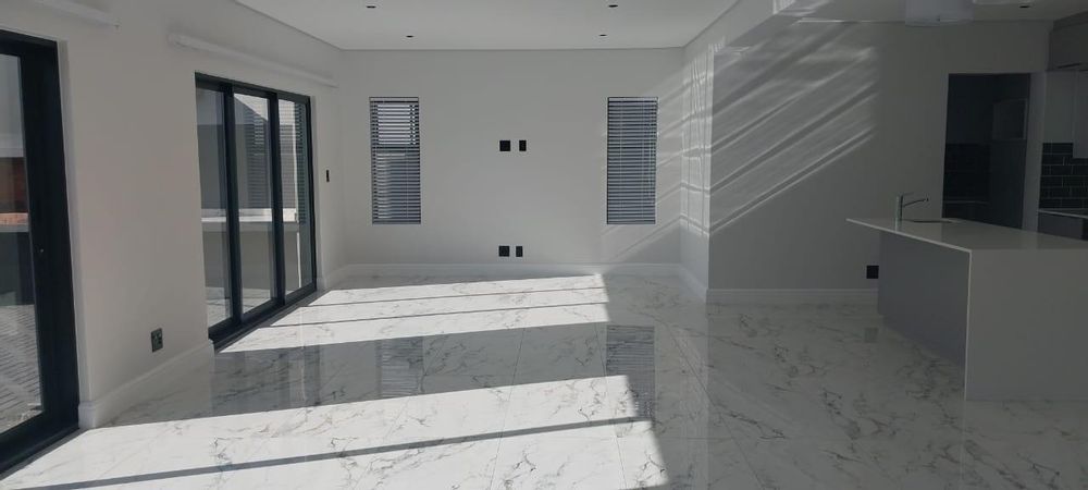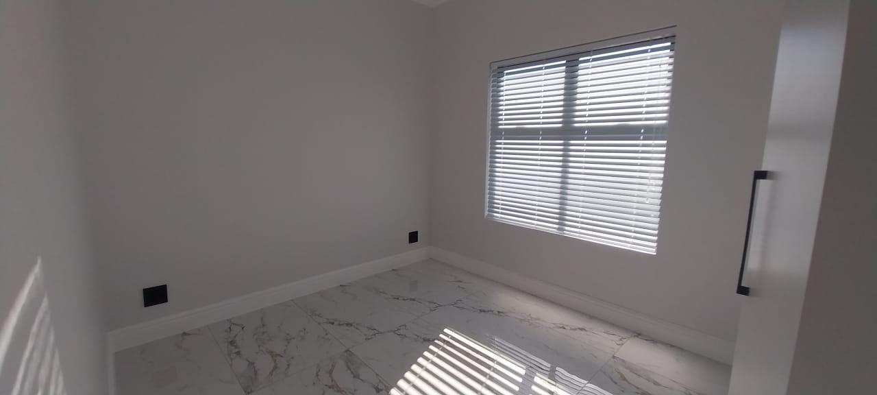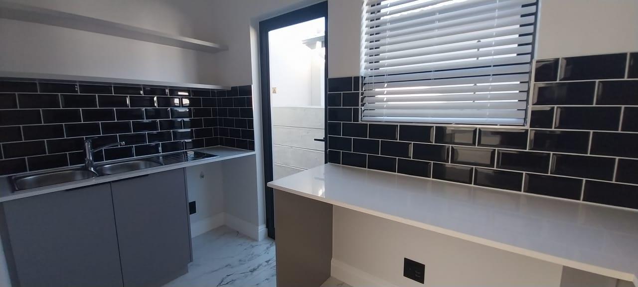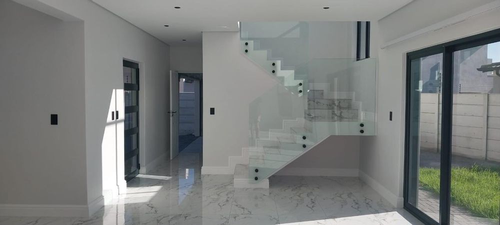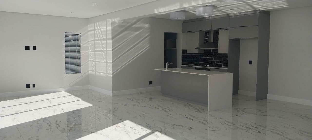 Welcome to your dream double-storey home, boasting elegance, comfort, and functionality. This spacious residence offers three bedrooms, all conveniently located upstairs for privacy, with one bedroom featuring en suite bathroom. Additionally, there's a shared family bathroom. Downstairs, you'll find a generous lounge area with double sliding doors that seamlessly connect to a covered braai and entertainment space, overlooking the lush garden. The kitchen is equipped with modern amenities, including a gas hob, and is complemented by a separate scullery/laundry room for added convenience. Throughout the home, luxurious marble tiles adorn the floors, adding a touch of sophistication to every corner throughout the house
