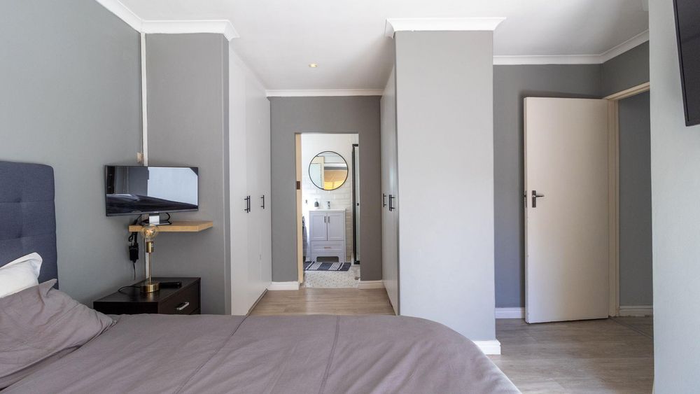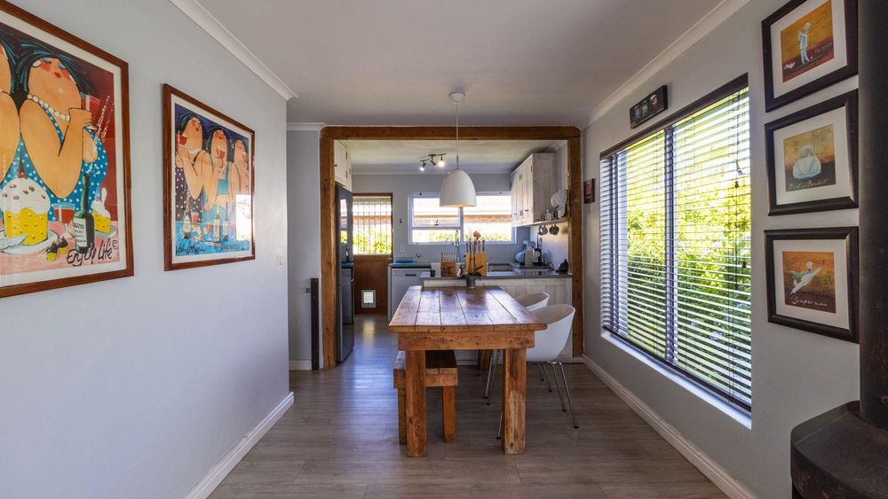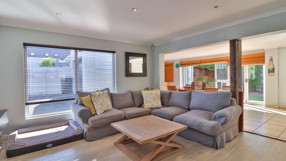 The kitchen, lounge and dining area are naturally light & bright, flowing seamlessy to a spacious, enclosed braai room, perfect for large gatherings. The stacker doors of the braai room (complete with pet-friendly access door) open up to the sunny patio with a heated pool and cute wrap around garden with automated irrigation system.