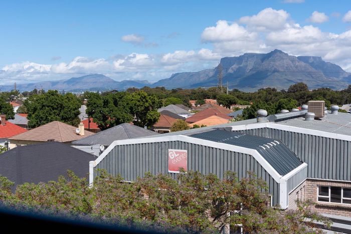 City edge Woodstock living with iconic Table Mountain views from a top-floor sunlit open-plan apartment; premium wooden floors and air-conditioning, one bedroom, one bath, minutes from Cape Town City Centre.