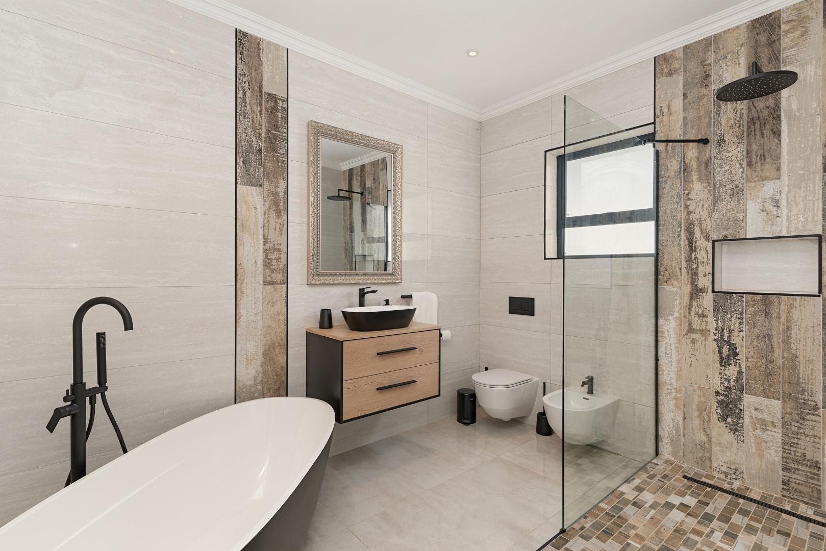 A spacious entertainment area complete with a large swimming pool, equipped with all necessary safety measures for children, making it perfect for hot summer days. The garden features fully automated irrigation as well as a borehole.