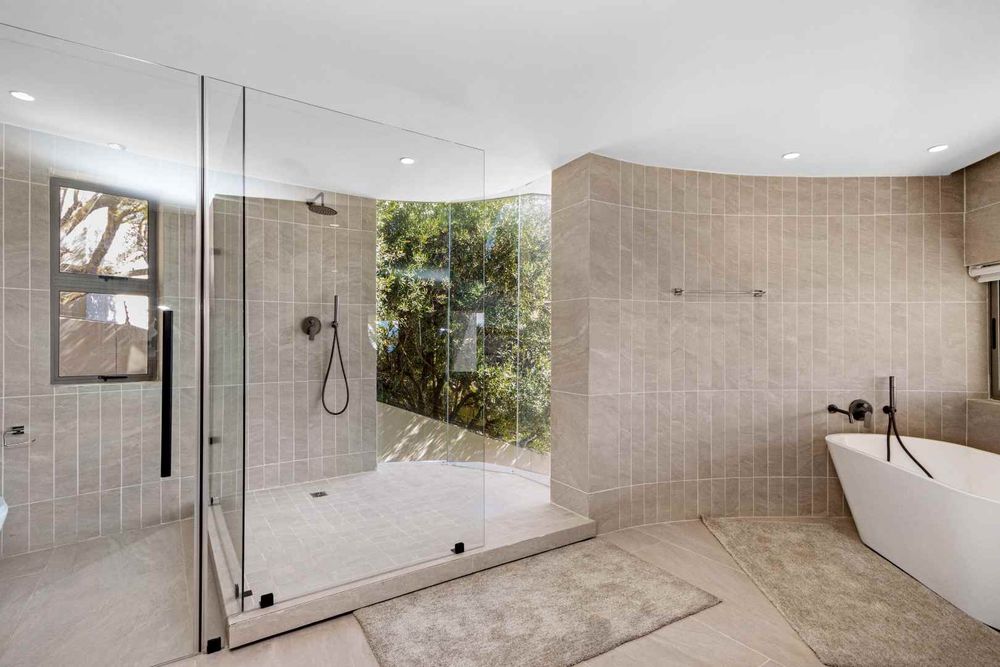 The ground level hosts a fully self-contained 2-bedroom, 2-bathroom flatlet with a lounge, kitchen, and private garden. Offering separate access from the road, this suite enjoys spectacular views due to the home's elevated position.