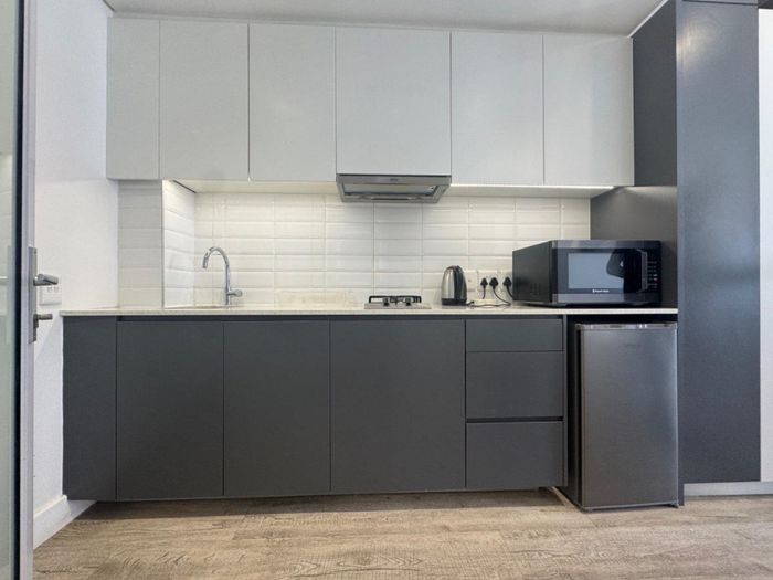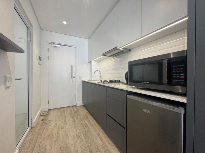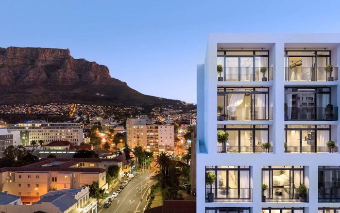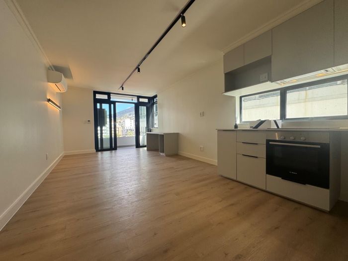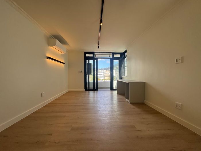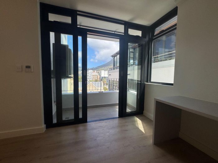 Live in vibrant Cape Town centre — walk to Bree and Long Street. Sunlit studio in a brand-new building with balcony and partial Table Mountain views.