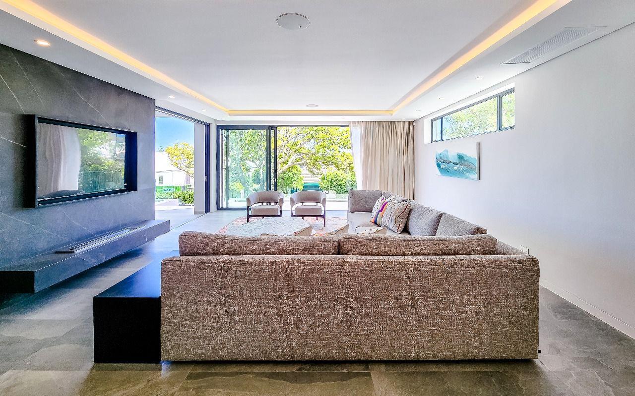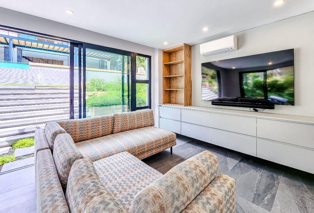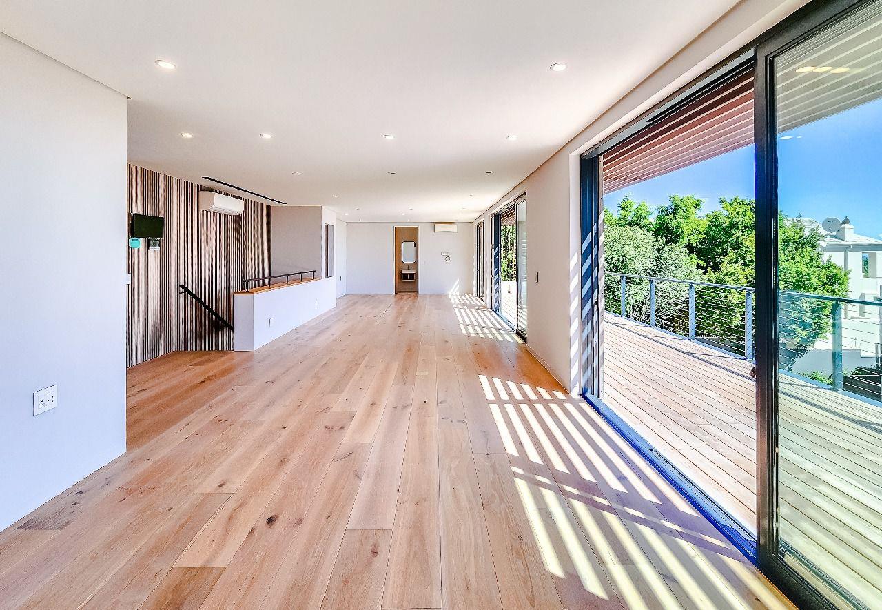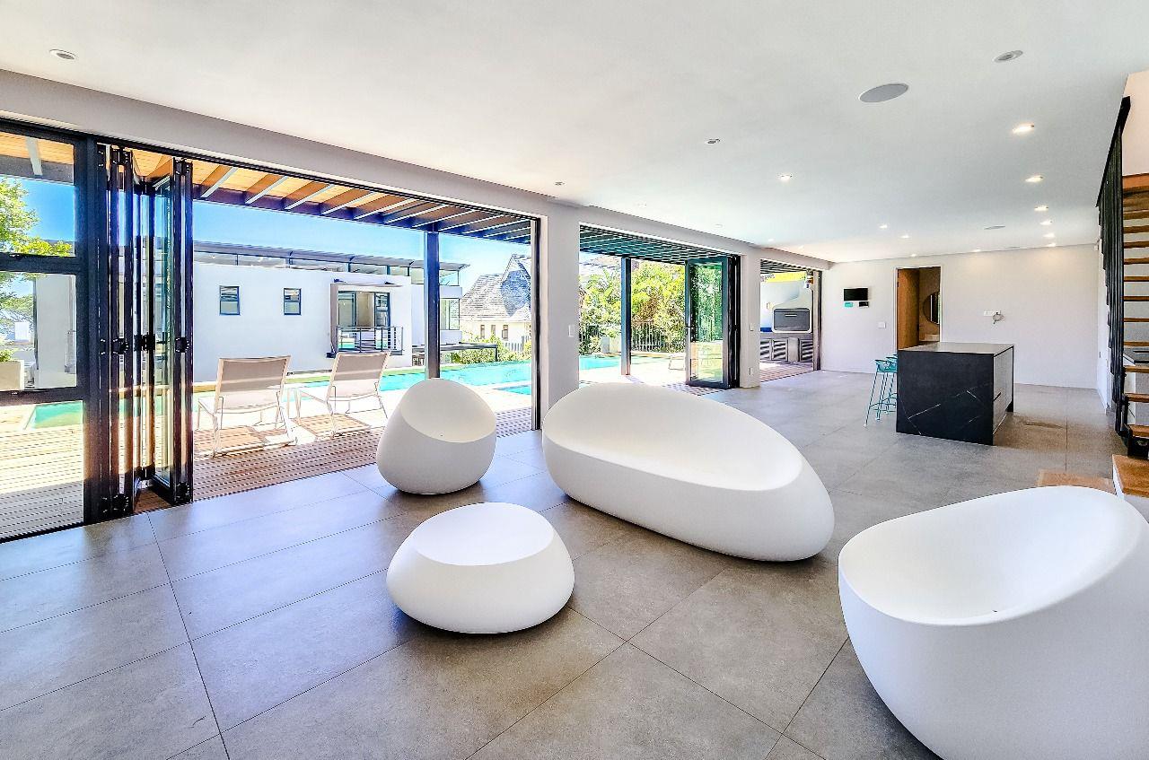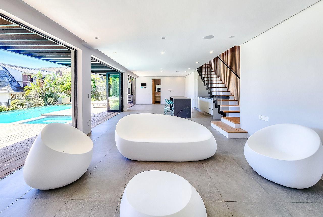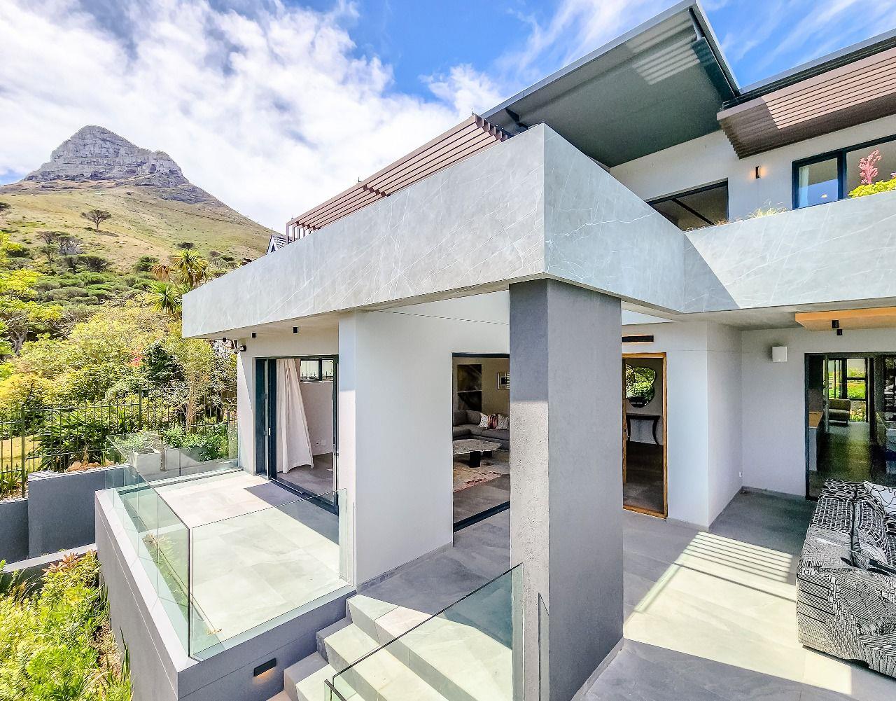 Perched on an expansive 1,156m2 plot, this architectural triumph is meticulously crafted to frame uninterrupted, cinematic views of Table Mountain, Lion’s Head, and the Atlantic Ocean from every angle.