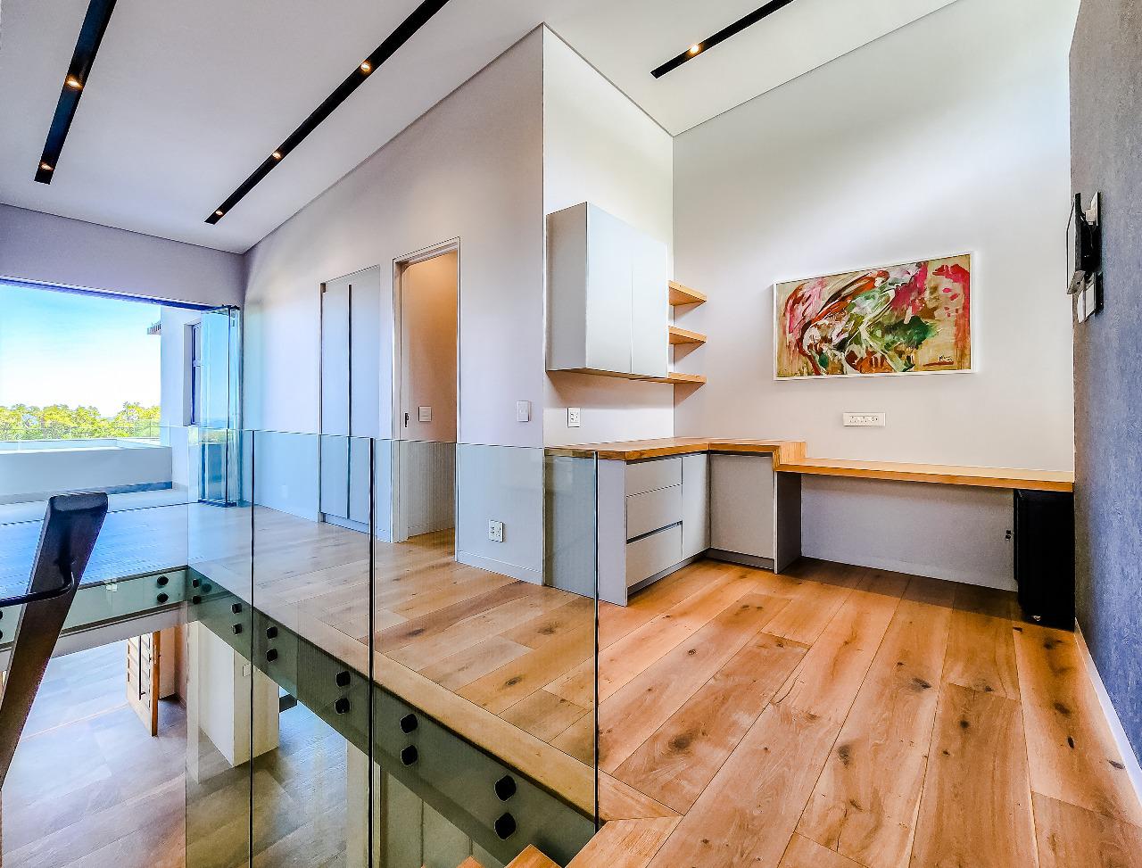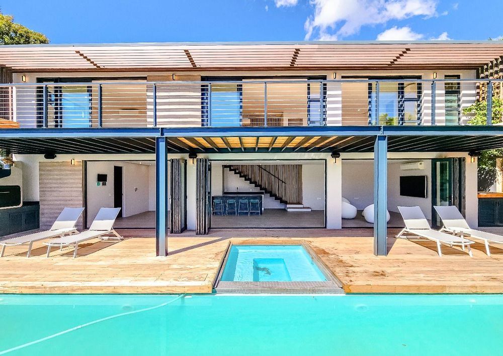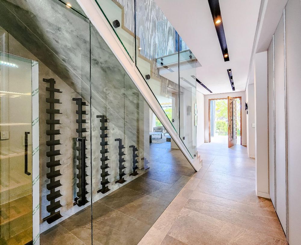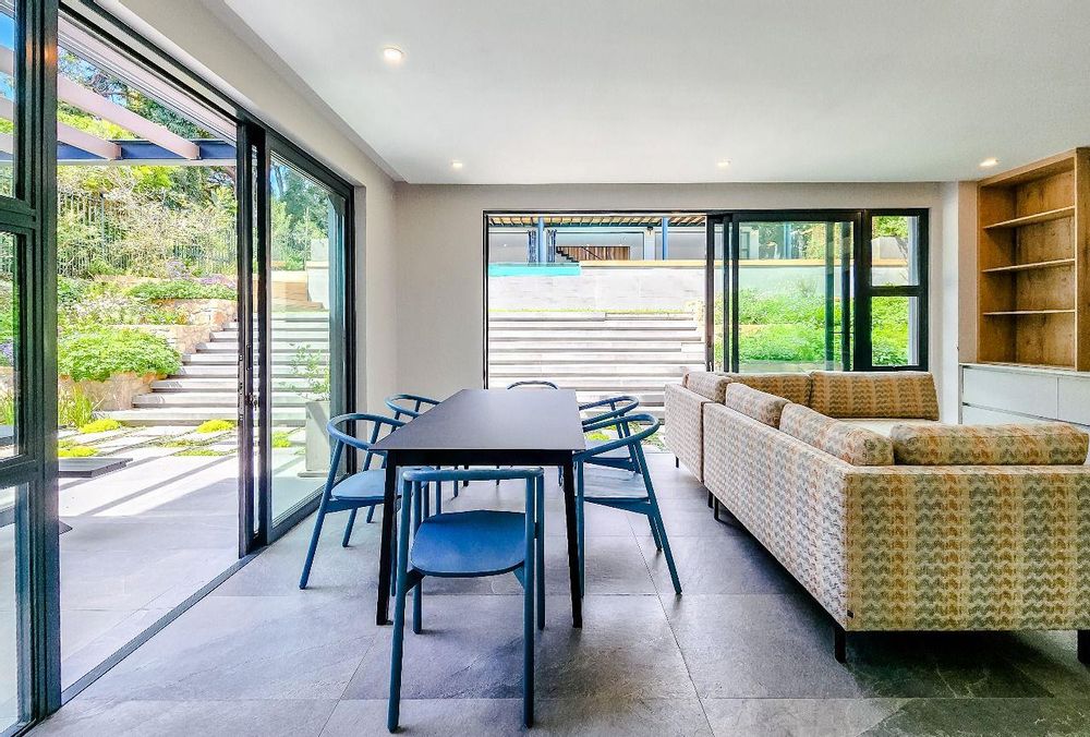 Outdoors, the property showcases not one, but two spectacular pools. The main house features a serene, sun-soaked pool oasis, while the dramatic double-storey pool house is built for grand-scale entertaining. Think: a 25-metre lap pool, a gourmet braai pavilion, and an upper-level lounge that transforms into your own private nightclub under the stars.