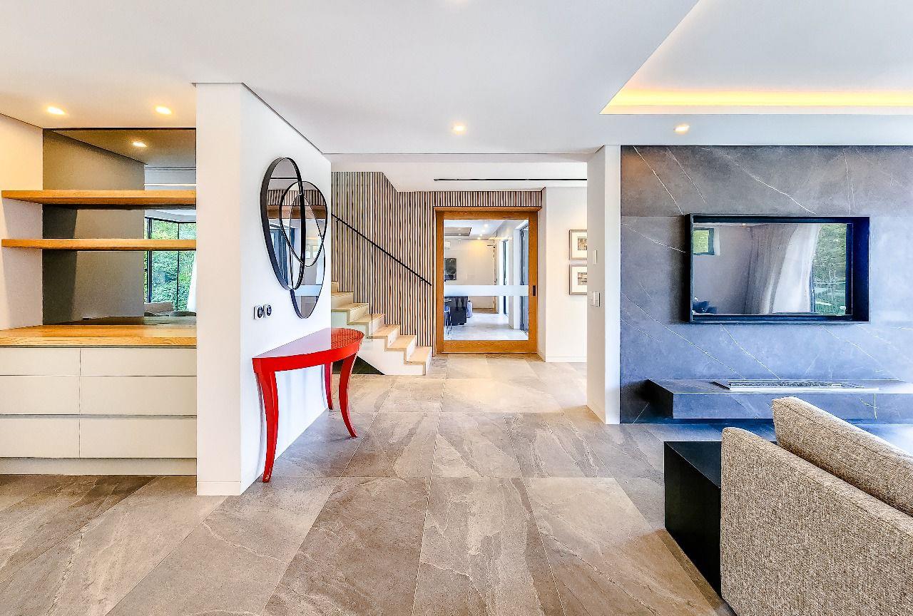 Step inside the main residence, where six opulent bedroom suites await — each with its own designer en suite bathroom and curated finishes. Expansive open-plan living spaces are bathed in natural light, wrapped in warm wooden flooring and elevated by top-tier materials throughout. The state-of-the-art kitchen flows effortlessly into a sophisticated entertainment zone, complemented by a bespoke wine cellar and direct-access double garage.