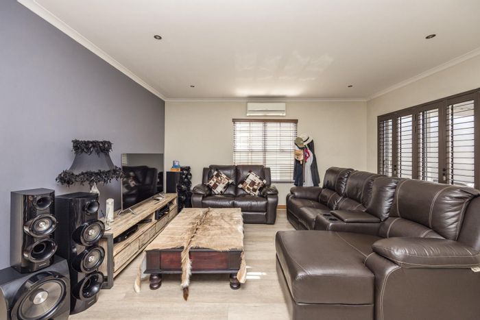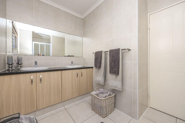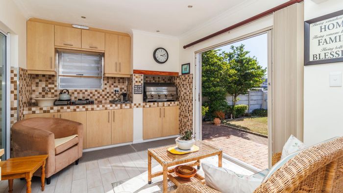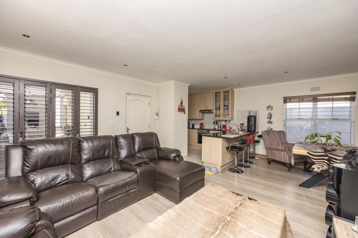 Year-round entertaining at a heated pool and enclosed braai room in secure Westwood Village Estate, Sunningdale, with cosy fireplace and manicured garden. Three bedrooms, two bathrooms, double garage.