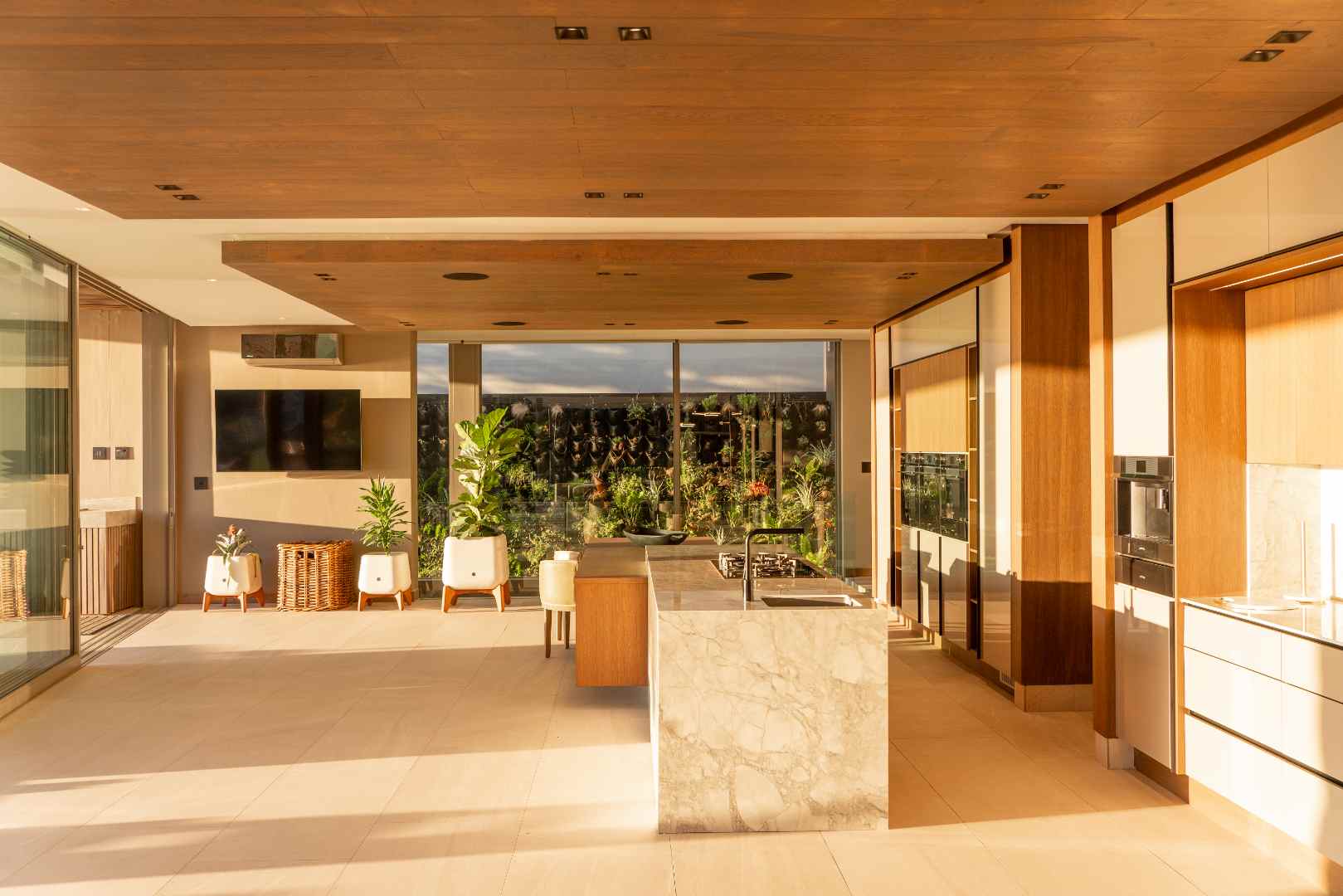 For intimate gatherings, the firepit offers a cozy ambiance, perfect for starlit evenings spent with loved ones. Additionally, guest or staff suites with their own lounge and kitchen area ensure privacy and comfort for all occupants, making this home a true sanctuary of coastal indulgence.