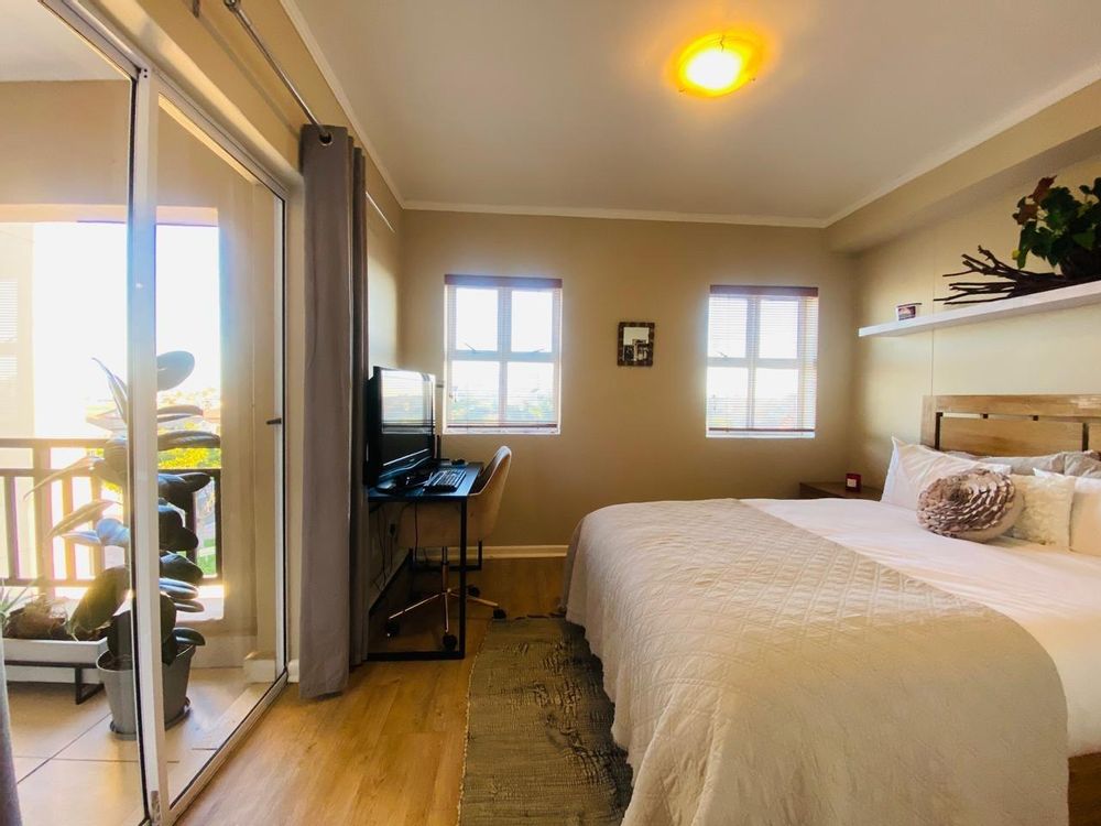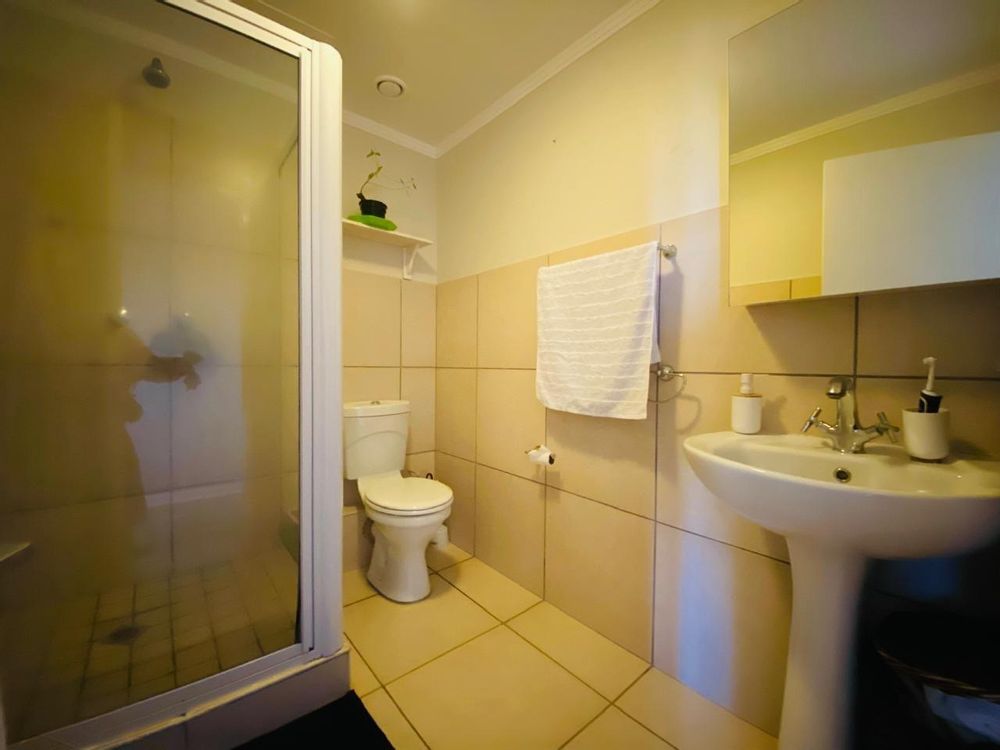 The main bedroom is generously sized and features a sliding door that leads out to the balcony. This is the perfect spot for your early morning coffee or a sundowner with Table Mountain as your backdrop. The main bedroom also features an en suite bathroom which is equipped with a shower for your convenience.