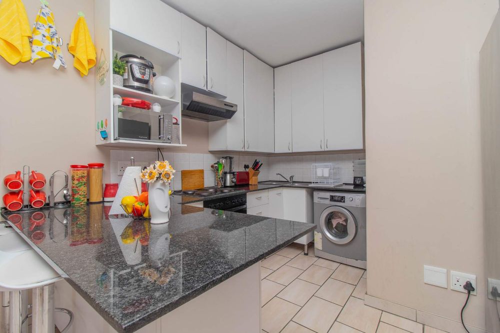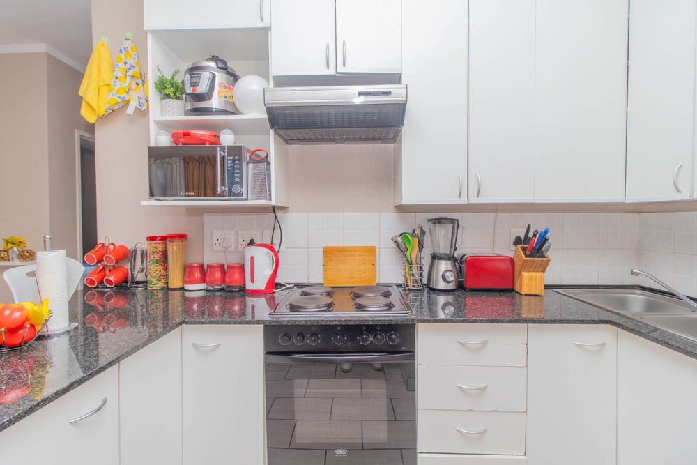 The heart of this home is its open-plan kitchen, a culinary dream where granite countertops gleam under soft lighting. Equipped with a full suite of modern appliances—oven, hob, and extractor fan—and abundant cupboard space, it’s a space that inspires both quick weekday meals and lavish dinner parties. Flowing seamlessly from the kitchen, the spacious lounge beckons with its airy ambiance, opening onto a wrap-around balcony that captures the breeze and offers panoramic views of the vibrant surroundings.