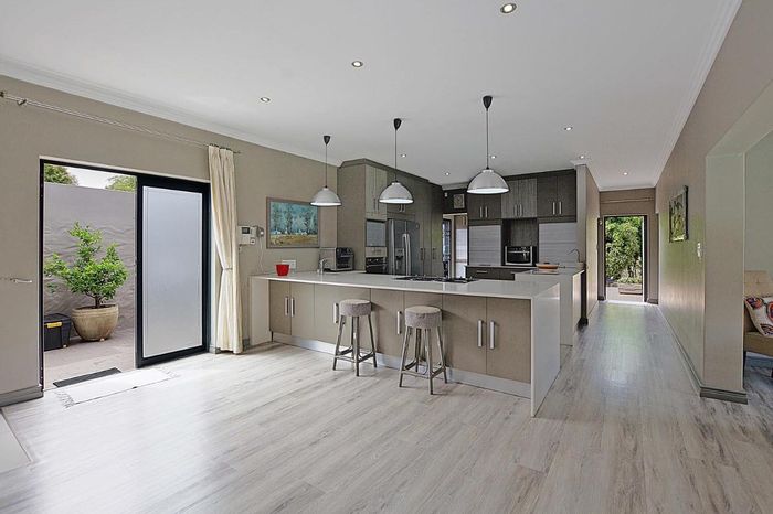Entertainer's oasis in Flamingo Vlei, ideal for multigenerational living and hosting, featuring a 180 m² top-floor studio, pool, lush garden, five beds, five baths, triple garage.