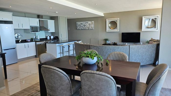 Beachfront living above Blouberg with uninterrupted Atlantic views, fully furnished open-plan interiors and a swimming pool with ocean vistas — two bedrooms, two bathrooms and one open parking.