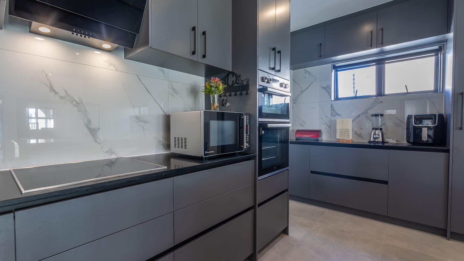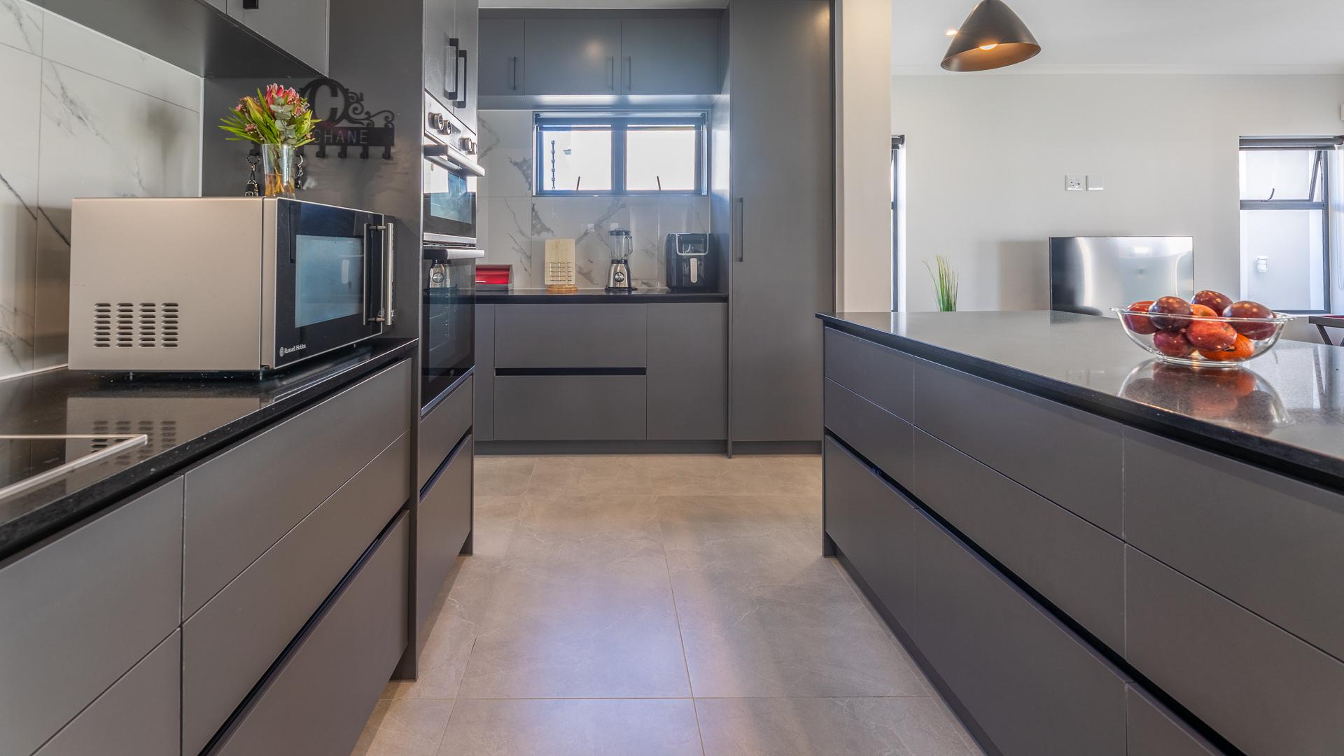 This beautifully designed 4-bedroom, 3.5-bathroom home blends contemporary style with family comfort and effortless entertainment. From the moment you step inside, you are welcomed by light grey tones and sleek finishes, with the kitchen immediately setting the tone as the heart of the home. Featuring an island that doubles as a breakfast nook, dark grey cabinetry, black countertops, and a separate scullery, it’s both practical and striking, the perfect focal point for modern living.