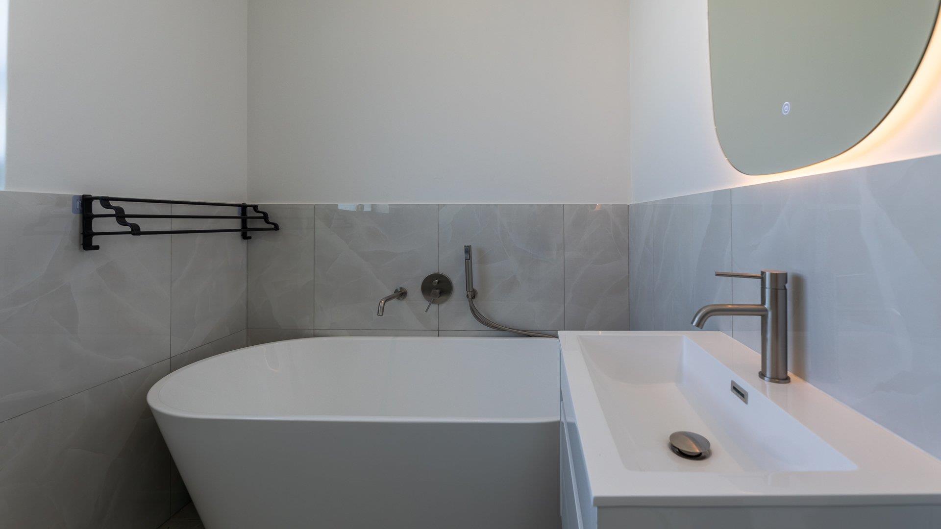 Upstairs, a cozy pyjama lounge offers access to a spacious balcony, the perfect spot for morning coffee or evening relaxation. Two guest bedrooms share a full bathroom, while the main suite is a true retreat. With direct balcony access, a walk-in closet, and an exceptionally spacious en-suite bathroom complete with a double vanity and a walk-in shower, it offers both luxury and comfort.