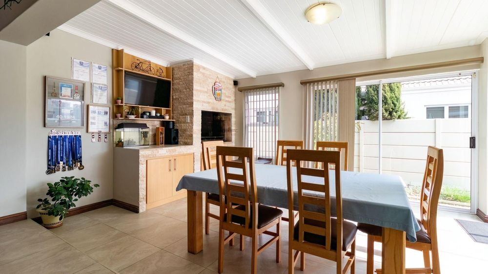 This beautifully maintained 3-bedroom, 2-bathroom home with a separate study is perfectly positioned on a corner plot in Westwood Village, a prime security estate in the popular suburb of Sunningdale. An open plan kitchen and spacious lounge, complimented by a cosy combustion fireplace, flows seamlessly into an enclosed braai room, ideal for year-round entertaining. Sliding doors open to a heated pool and beautifully manicured garden.