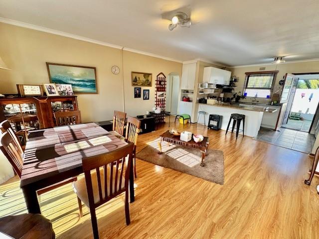 The light-filled open-plan living area creates a welcoming atmosphere, ideal for both everyday living and entertaining guests. Three well-proportioned bedrooms share a neat, full bathroom, ensuring functionality and ease for families or couples.