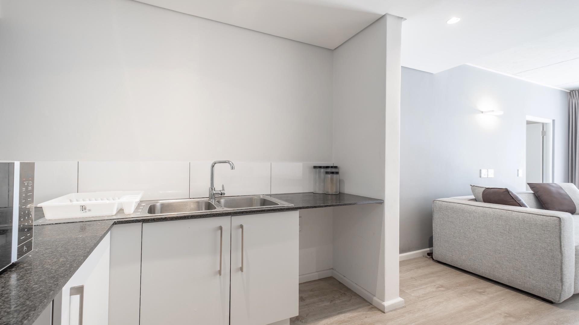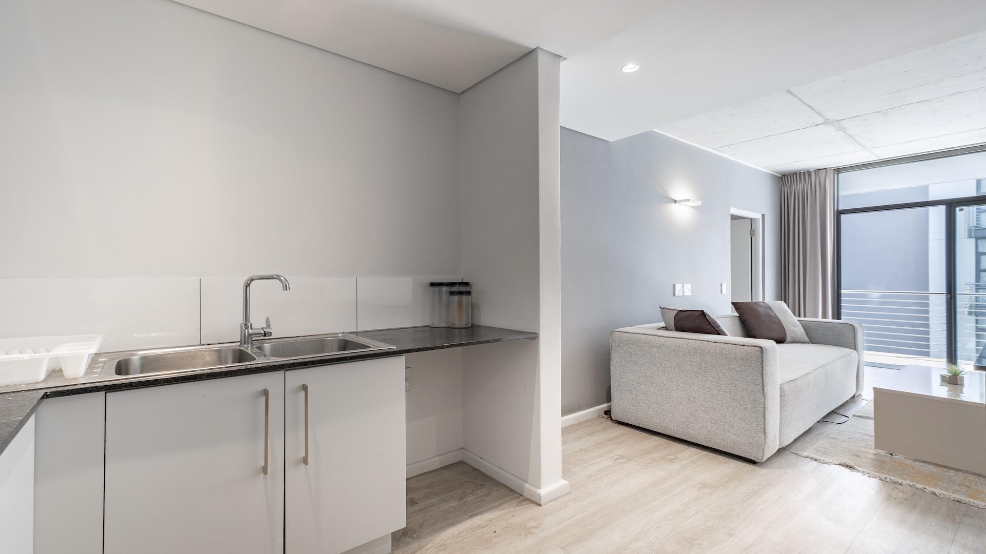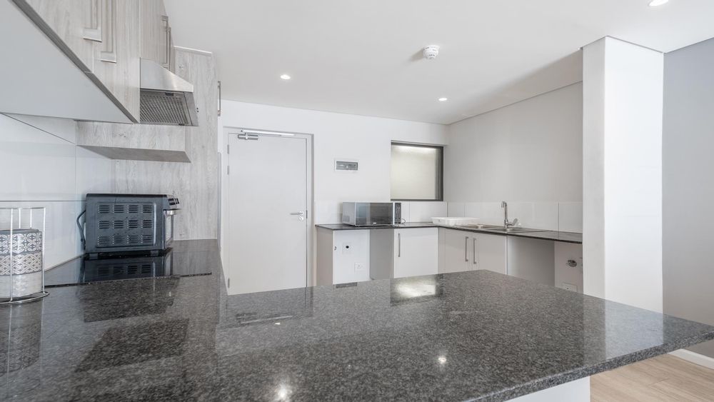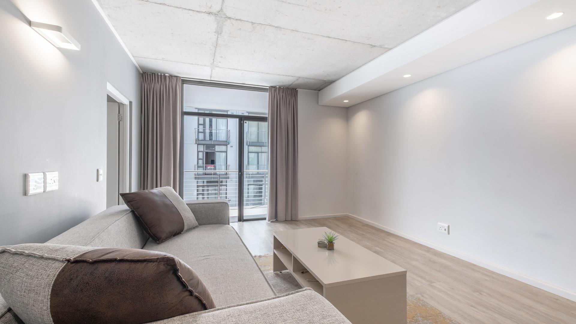 The living area is designed to be spacious and welcoming, with enough space for a coffee table, tv and sofa. The kitchen provides a convenient space for preparing meals and storing groceries. The balcony is large and sets the unit back and protected by the wind.